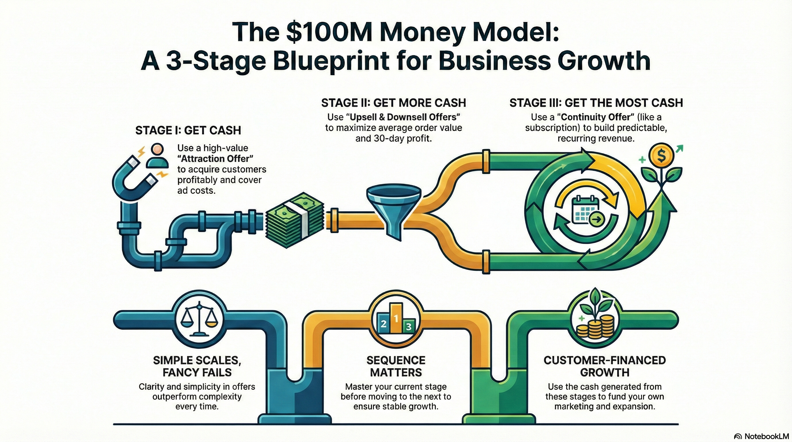 A money model is different. It’s the sequence of offers you line up across the customer journey, so that new customers quickly become highly profitable customers.