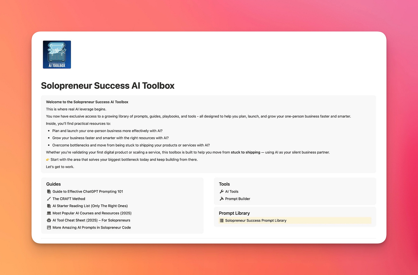 I created this all-in-one toolkit for building a profitable one-person business, something I wish existed when I first started, and it saves me 20+ hours a week.