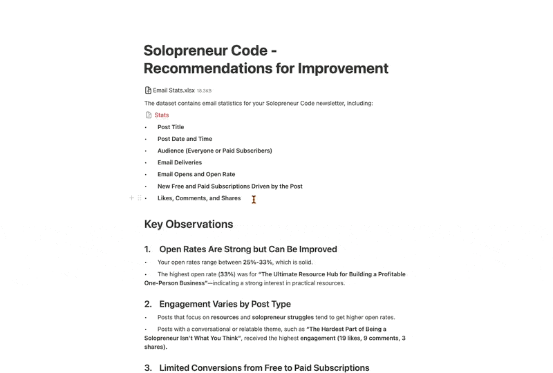 In this post, weāll walk you through how to export your Substack data, analyze it using AI, and interpret the results to improve open rates, subscriber growth, and engagement.