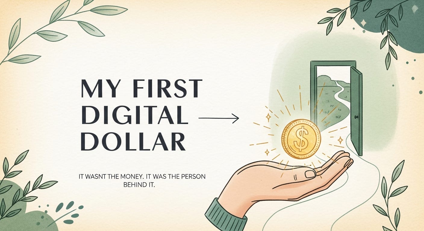 When I think about my first digital dollar, I don’t think about Medium. I think about two people who saw a Note from someone three months in, felt something, and decided to bet on me.