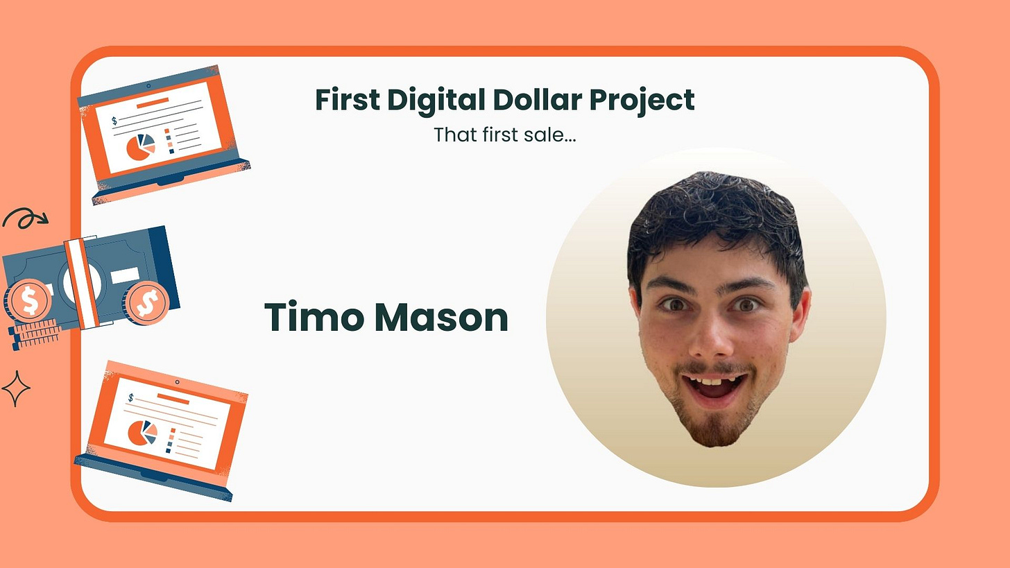 This post is a guest contribution from Timo Mason🤠 , a fellow solopreneur sharing the story of that first sale.